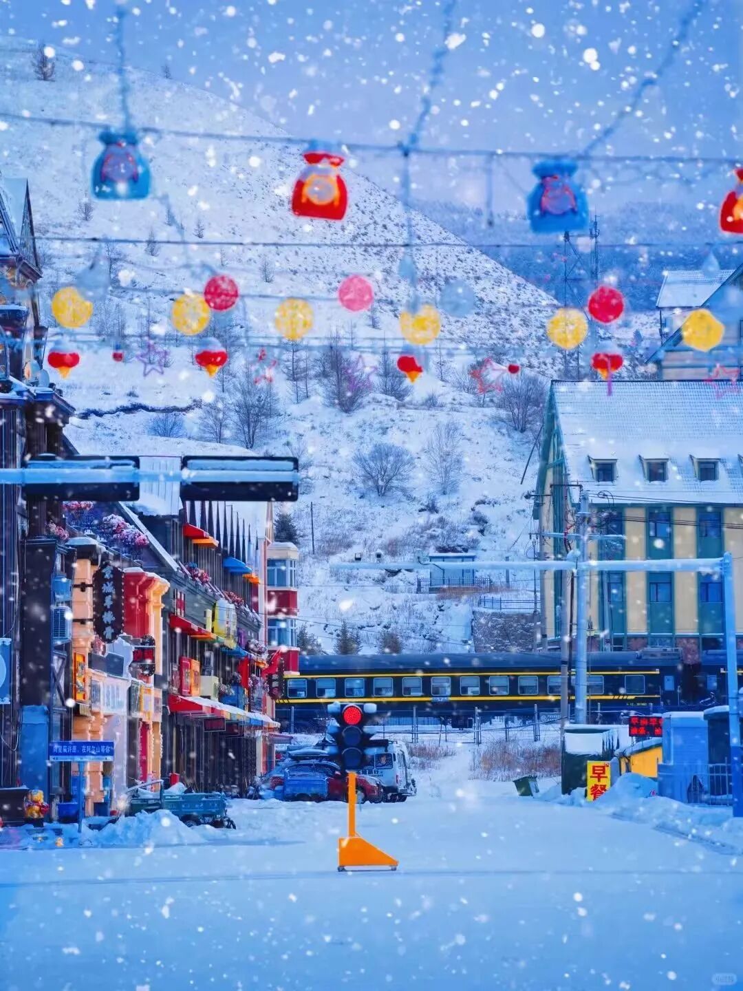 登上白狼峰觀景臺,俯瞰一望無際的林海雪原,夕陽西下時,整片雪原被染成溫柔的金色,寒風掠過,雪花漫舞,這一刻的壯闊,足以治愈所有煩惱。走進阿爾山雪村,木刻楞房頂著圓滾滾的“雪蘑菇”,紅燈籠在白雪中搖曳,晚上燈光一亮,暖黃色的光灑在雪上,感覺自己在童話里 。