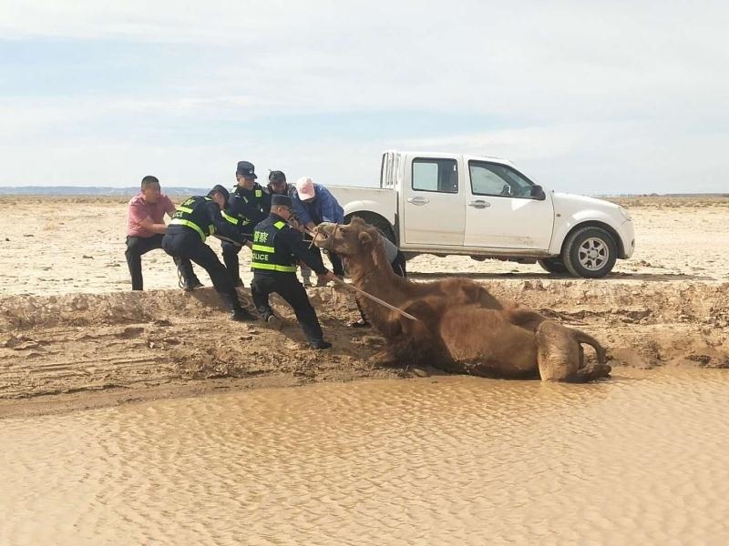 無獨有偶。當日下午,阿拉善左旗蘇宏圖邊境派出所也接到群眾報警:稱其一峰駱駝陷入泥潭無法脫身,請求救助。民警趕到現場后發(fā)現這是一峰懷孕母駝,在飲水時不慎滑入泥潭,由于浸泡許久,已經無法站立。民警當即采取措施,在避免肚子受傷害的前提下,將兩條繩子分別固定在駱駝前肢與后肢,再利用人力拖拽,經過2個小時的救援,成功將母駝救出。(牛鑫 梁鎮(zhèn) 于鶴偉)