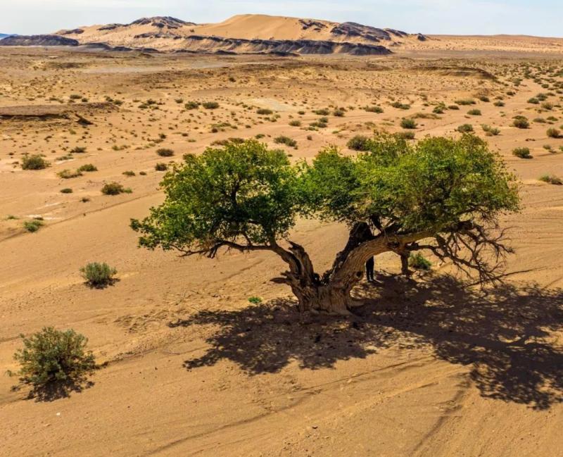 旱榆,樹齡有659年,生長于阿拉善右旗塔木素布拉格蘇木恩格日烏蘇嘎查。