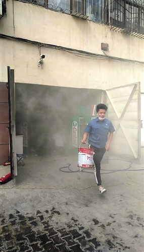 “我家車庫著火了,能不能用熱力站的水幫我滅火?”張霖和徐小煒剛跑出大門口,就碰到了慌慌張張的居民。兩人立刻將皮管從窗戶伸到外面,對著車庫噴水。由于不清楚用戶車庫內(nèi)有什么易燃物品,發(fā)現(xiàn)火勢雖被控制但并沒有完全熄滅,兩人又取上站內(nèi)常備的滅火器,一邊熟練地使用一邊分析火情,并戴上防塵面罩在確保安全的情況下進(jìn)入車庫內(nèi),第一時間撲滅了火源。