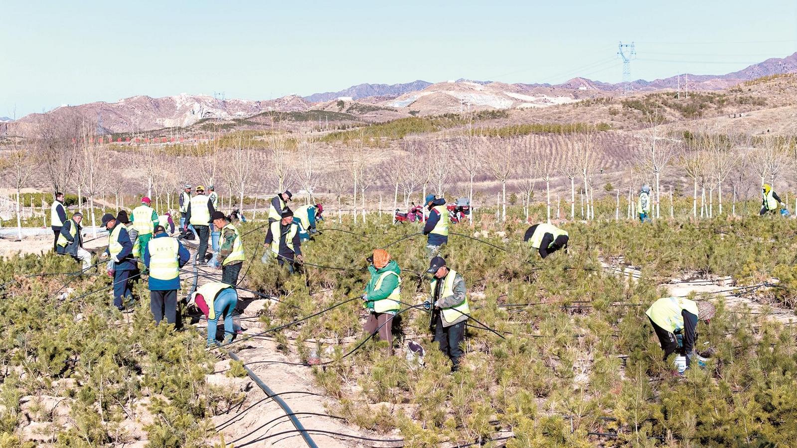 由東到西,從南向北,青苗綻翠,新綠生根。放眼包頭“三北”工程各旗縣區(qū)生態(tài)建設現場,處處呈現出一片熱火朝天的繁忙景象。苗木搬運、打孔、樹苗栽種、填土圍堰、澆水,人力與機械互相協(xié)作,科技與創(chuàng)新相得益彰。