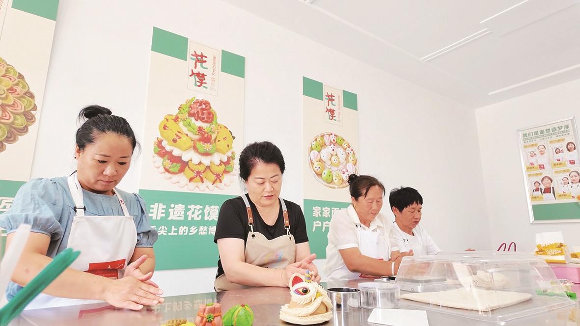 在阿嘎如泰蘇木烏蘭計(jì)五村的花饃工作室,村黨支部書記石海霞和姐妹們的手中,普通的面團(tuán)被賦予生命,變成了栩栩如生的石榴、生肖、花朵,這不僅是食物,更是精美的工藝品。