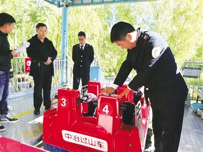 隨后,執(zhí)法人員登上過山車,仔細(xì)檢查其運(yùn)行狀況,并對過山車的座椅、安全帶、扶手等進(jìn)行了詳細(xì)檢查?!坝螛吩O(shè)施安全狀況總體良好,操作管理人員均持證上崗,每天按時(shí)檢查設(shè)備,并明示了安全注意事項(xiàng),設(shè)備在檢驗(yàn)有效期內(nèi),相關(guān)安全管理制度及應(yīng)急方案較完善。”新城區(qū)市場監(jiān)督管理局副局長左會(huì)素對記者說。