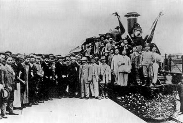 1912年9月6日,孫中山視察詹天佑修建京張鐵路時(shí),在張家口車站月臺(tái)上合影。(資料圖)1907年鋪設(shè)的老鐵軌。