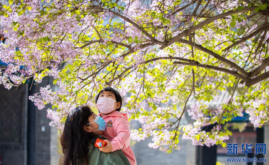 4月20日,市民來到位于呼和浩特市的內(nèi)蒙古將軍衙署博物院觀賞盛開的丁香花。新華網(wǎng)發(fā)(丁根厚 攝)