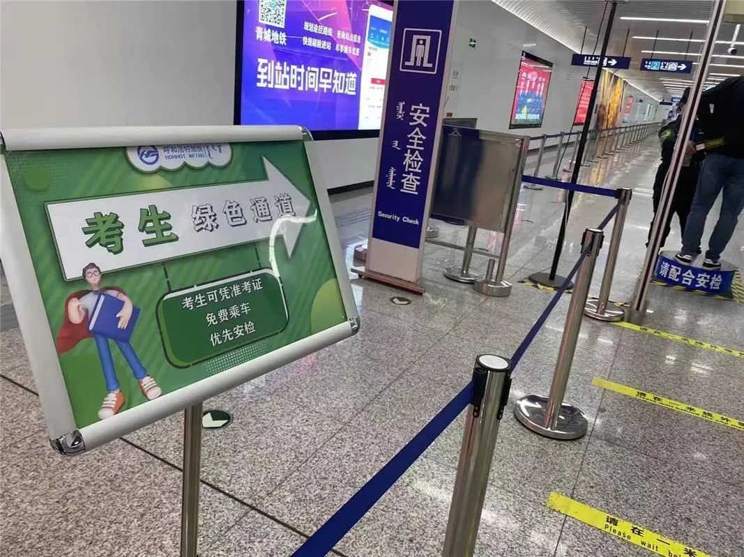 6月7日至9日,呼和浩特地鐵開展“追夢有你,護航有我”高考助力活動,在44座地鐵站點設(shè)置“考生綠色通道”,考生可以優(yōu)先安檢、優(yōu)先進站免費乘坐地鐵,工作人員全力以赴做好防疫措施,保障考生乘車更放心、赴考更舒心。