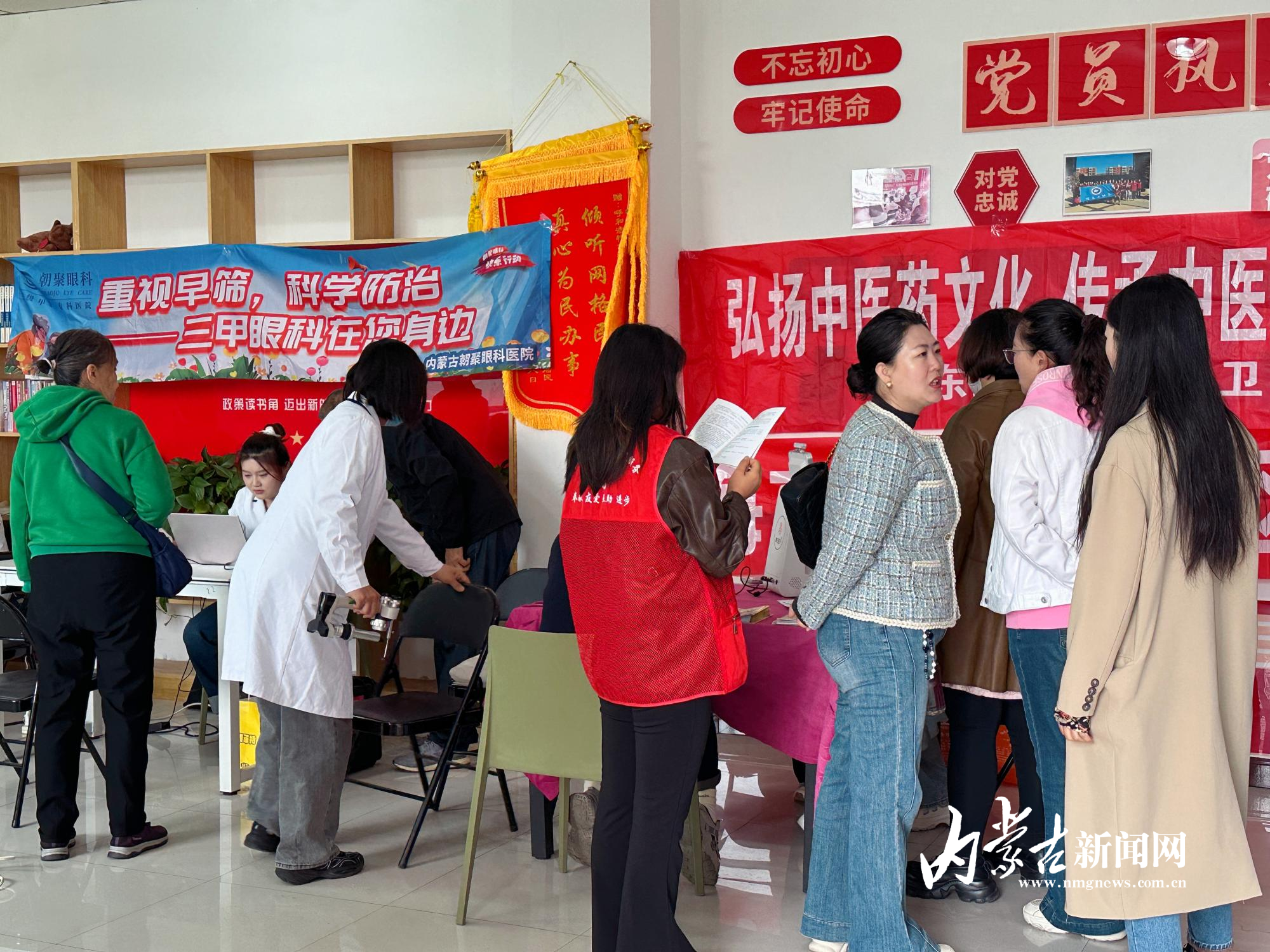 “醫(yī)生,我最近看報紙總覺得字發(fā)虛,是不是白內障又加重了?”“您別著急,先坐好,我?guī)湍屑毑椴檠鄣住!?0月10日上午,呼和浩特市新城區(qū)海拉爾路街道哲里木路社區(qū)戎輝小區(qū)活動室內暖意融融,醫(yī)護人員正耐心地為居民做眼部檢查。當日,哲理木路社區(qū)聯合內蒙古朝聚眼科醫(yī)院在這里開展眼科義診活動。