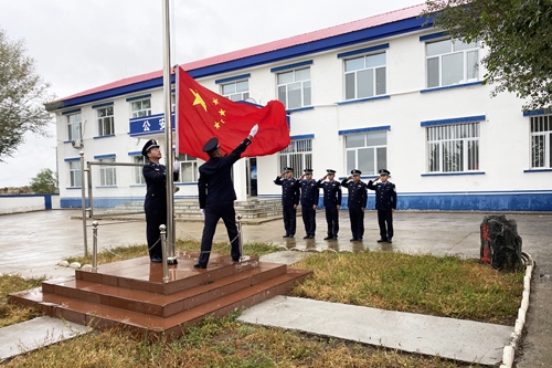 9月18日上午,內蒙古塔日根諾爾邊境派出所舉辦升國旗儀式,紀念“九一八”事件89周年。