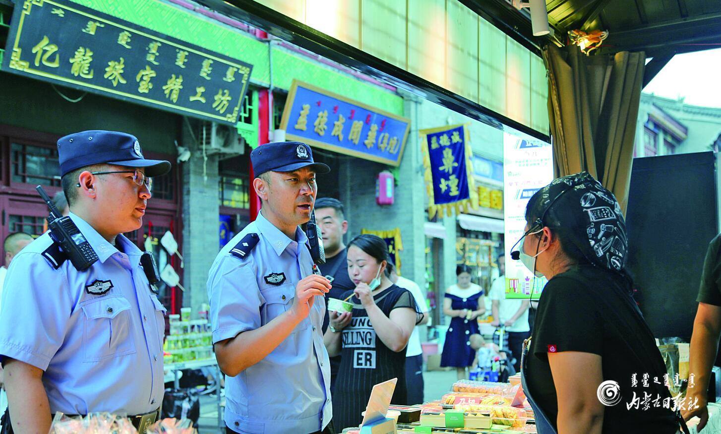 呼和浩特市玉泉區(qū)公安分局景區(qū)治安派出所民警立足大召寺AAAA 級(jí)景區(qū)及周邊治安管控和服務(wù)管理實(shí)際,加強(qiáng)日常巡邏,積極服務(wù)群眾、化解矛盾。李文彬 攝