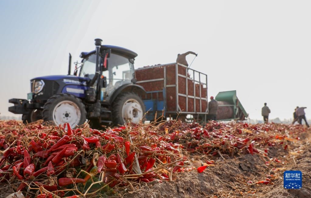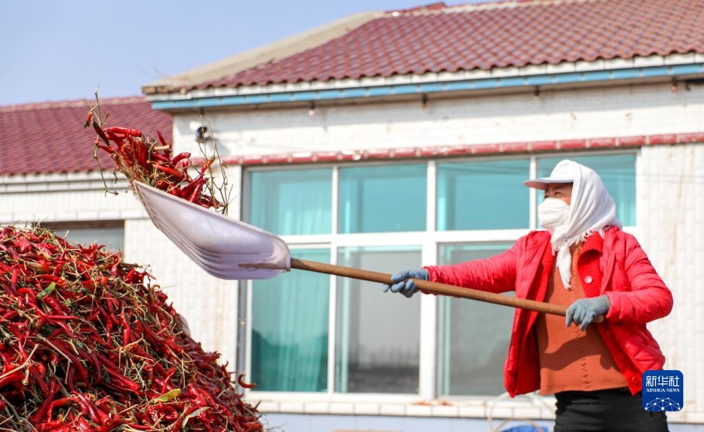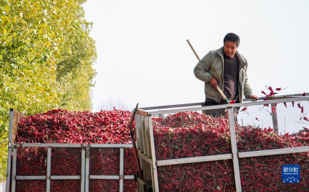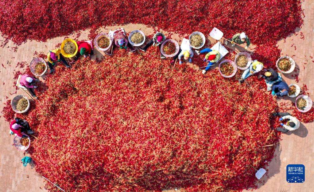 近日,內蒙古通遼市開魯縣迎來紅干椒收獲銷售旺季。開魯縣紅干椒皮紅肉厚、品質優(yōu)良,產品暢銷國內外市場。近年來,開魯縣紅干椒種植面積穩(wěn)定在60萬畝。新華社記者 連振 攝