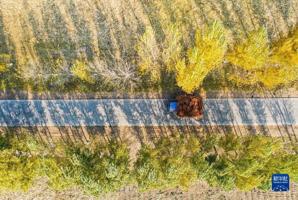10月25日,在開魯縣東風鎮(zhèn)東方紅村,村民運輸收獲的紅干椒(無人機照片)。新華社記者 連振 攝