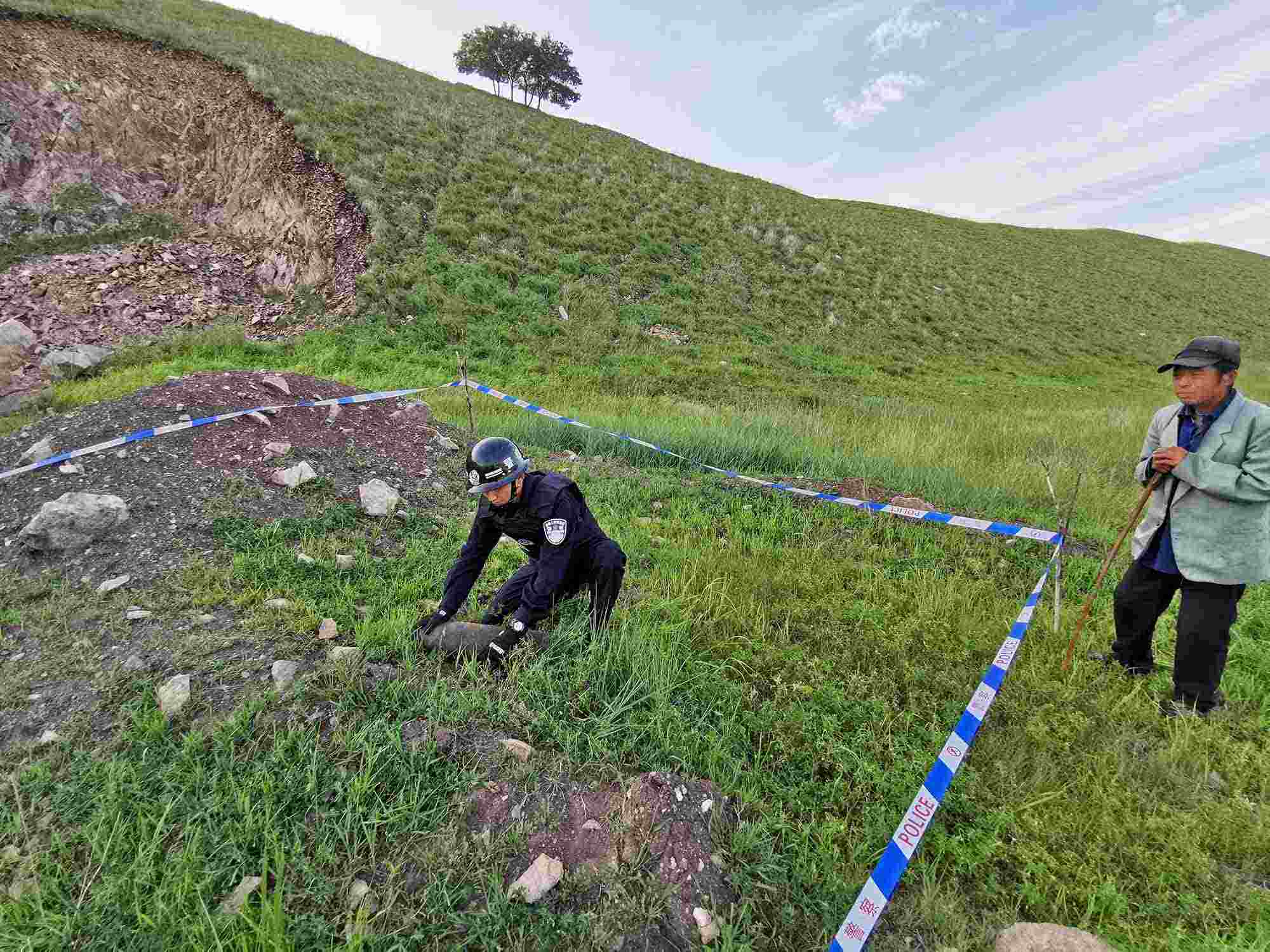 8月18日10時(shí),阿爾山邊境派出所接到轄區(qū)群眾報(bào)警稱:在阿爾山市某山上發(fā)現(xiàn)疑似炮彈的金屬物體。民警迅速趕往指定地點(diǎn),劃定警戒區(qū)、封鎖出入通道,在現(xiàn)場很快發(fā)現(xiàn)了長約30厘米不等的3枚廢舊炮彈,經(jīng)初步勘驗(yàn),該炮彈系日軍侵華時(shí)期遺留,引信已經(jīng)損壞,但內(nèi)部裝置完好,受到劇烈撞擊仍有爆炸可能。8月19日14時(shí),科右前旗綠水邊境派出所民警下鄉(xiāng)走訪期間,根據(jù)羊倌反映,在一處放牧包附近挖出2枚20厘米不等的廢舊炮彈和1枚手雷,炮彈的鐵質(zhì)外殼雖已生銹,但引信完好,輪廓清晰,若有牲畜踩踏仍有可能發(fā)生爆炸,具有較大的殺傷力。為徹查隱患,民警將炮彈轉(zhuǎn)至安全地帶后,對附近區(qū)域進(jìn)行了全方位排查搜索,未發(fā)現(xiàn)其他安全隱患。