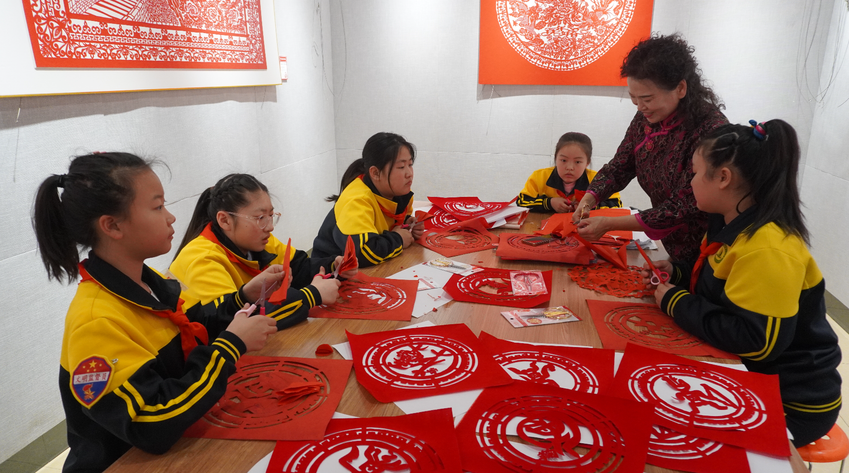 此次展覽的剪紙作品內(nèi)容豐富、制作精致、形式多樣,在傳承傳統(tǒng)剪紙藝術(shù)的同時,注入了新時代的元素特征,以剪紙藝術(shù)詮釋烏蘭浩特市自然風物、傳統(tǒng)建筑與歷史文化之美,展現(xiàn)出剪紙技藝在傳承與發(fā)展中的無限魅力。觀眾不僅可以近距離感受剪紙的藝術(shù)魅力,還可以參與剪紙,感受中國傳統(tǒng)文化的博大精深。
