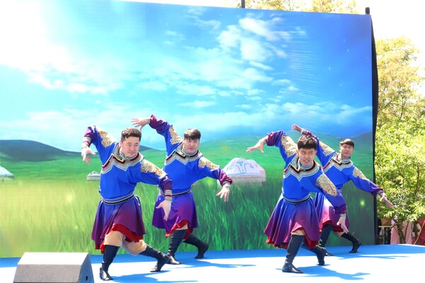 緊接著,興安盟烏蘭牧騎隊員手中的馬頭琴悠然奏響,旋律如潺潺溪流,流淌在每一個人的心田。身著盛裝的《草原歡歌》舞者在舞臺上盡情翻飛旋轉(zhuǎn),她們的舞姿輕盈靈動,仿佛將首都市民帶入了廣袤無垠的科爾沁草原,讓人們在京城之中也能感受到草原的遼闊與奔放。
