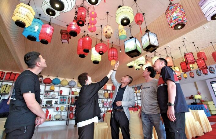 “我們有手工編織的宮燈、紗燈、吊燈等180多種款式的燈籠供消費者選擇?!苯?,自治區(qū)級非物質文化遺產(chǎn)項目——燈籠編織技藝傳承人杜學龍給游客介紹自己的產(chǎn)品。
