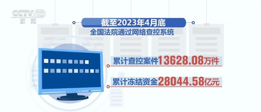 截至2023年4月底,全國(guó)法院通過(guò)網(wǎng)絡(luò)查控系統(tǒng)累計(jì)查控案件13628.08萬(wàn)件,累計(jì)凍結(jié)資金28044.58億元,查詢房屋、土地等不動(dòng)產(chǎn)信息81963.89萬(wàn)條,車(chē)輛19018.00萬(wàn)輛,證券42195.43億股,漁船和船舶371.79萬(wàn)艘,網(wǎng)絡(luò)資金1009.75億元,有力維護(hù)了勝訴當(dāng)事人合法權(quán)益。