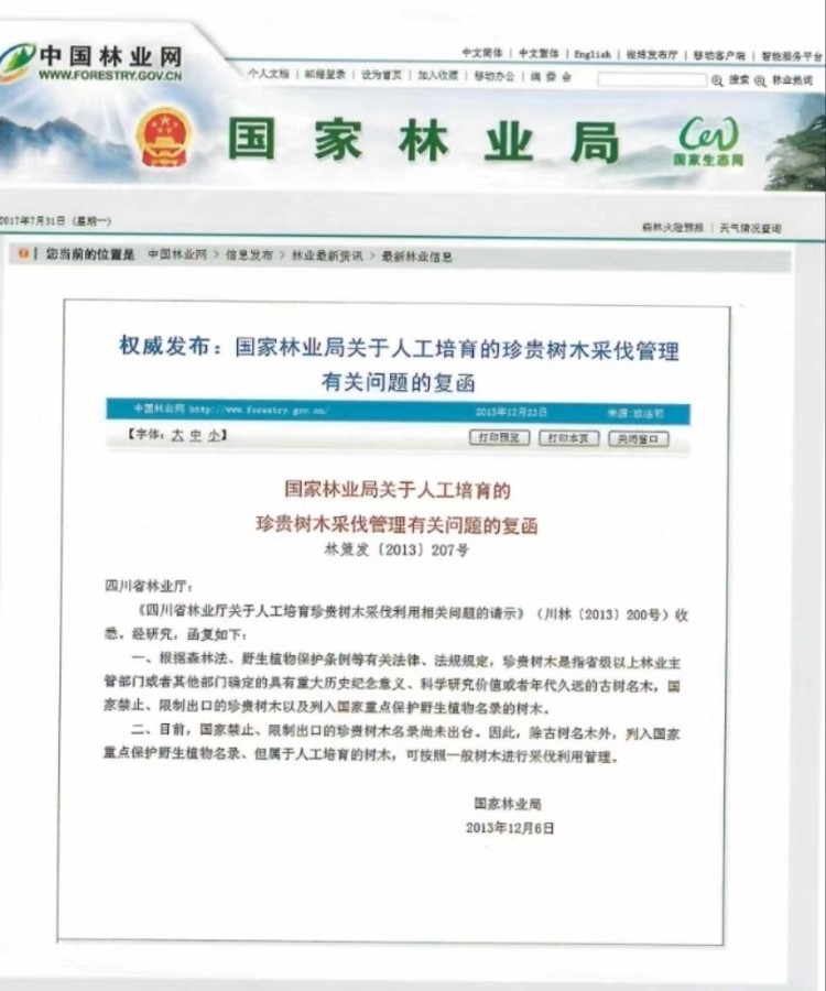 2020年3月,兩高批復明確“人工培育的植物,除古樹名木外,不屬于刑法第三百四十四條規(guī)定的‘珍貴樹木或者國家重點保護的其他植物’”。圖片來源/網(wǎng)頁截屏