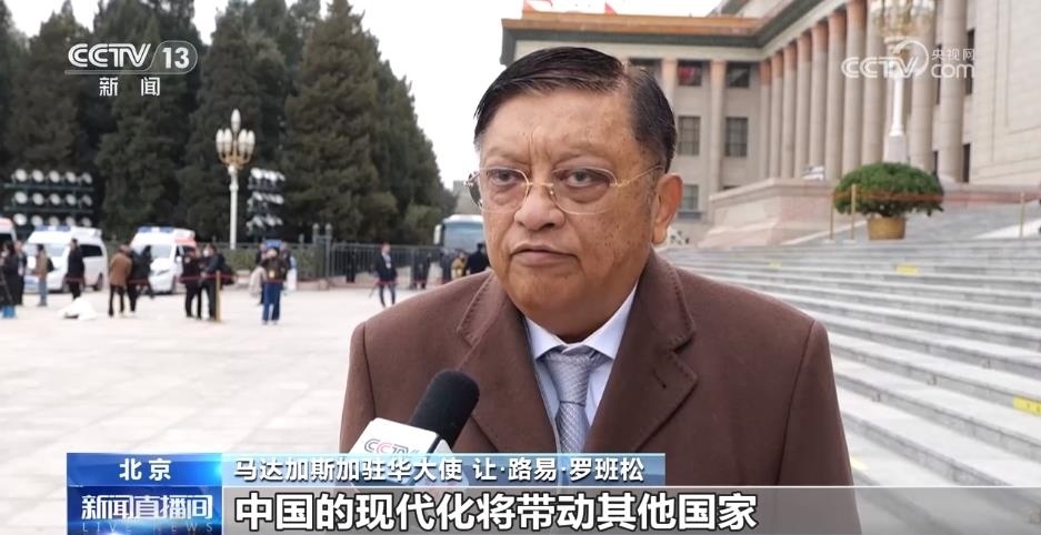 馬達(dá)加斯加駐華大使 讓·路易·羅班松:中國的現(xiàn)代化發(fā)展很好,中國的現(xiàn)代化將帶動其他國家,尤其是發(fā)展中國家的現(xiàn)代化。中國有關(guān)世界和平的立場主張也會更加受到全世界的關(guān)注。