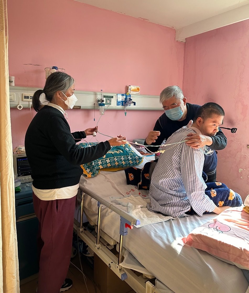 張昌碩身高一米八幾,張宏銀和鄭建英需要合力才能把他從床上推起來(lái),為了省錢,除了需要專業(yè)醫(yī)護(hù)人員進(jìn)行的康復(fù)項(xiàng)目,比如針灸,或者要用理療設(shè)備,他們大多自己給孩子做康復(fù)——按摩他的全身,包括手指腳趾,每一個(gè)地方都不能錯(cuò)過(guò)。