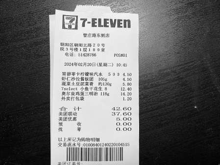 上周,市民李先生通過外賣平臺在711便利店管莊路東側(cè)店下單了5件商品。收到外賣后,李先生發(fā)現(xiàn),商品包裝上的價格與自己下單時的價格不一致?!皧W爾良雞蛋三明治14.2元,而包裝上標(biāo)注的是13.5元,多收了7毛。”李先生說。