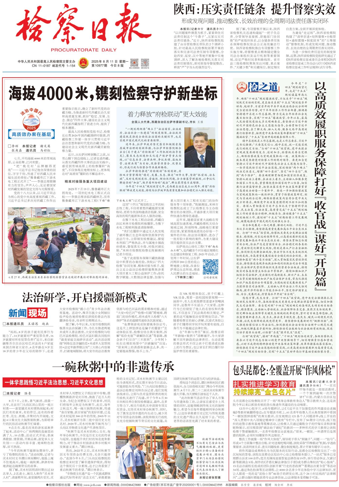 2025年8月11日,《檢察日報》第1版刊發(fā)題為《包頭昆都侖:全覆蓋開展“作風(fēng)體檢”》的文章,報道了內(nèi)蒙古自治區(qū)包頭市昆都侖區(qū)檢察院召開了一場“用身邊事教育身邊人”警示教育大會。這是該院今年以來以抓鐵有痕的勁頭推進作風(fēng)建設(shè)的生動縮影。