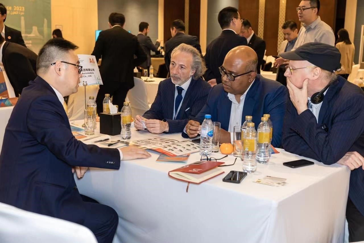 在企業(yè)自由對(duì)接環(huán)節(jié),參會(huì)的廣西企業(yè)高管與阿聯(lián)酋當(dāng)?shù)仄髽I(yè)代表,在會(huì)場(chǎng)設(shè)立的物流、農(nóng)產(chǎn)品及食品、裝備制造、通關(guān)服務(wù)、影視動(dòng)漫、清真產(chǎn)品等領(lǐng)域企業(yè)洽談區(qū),進(jìn)行了面對(duì)面洽談,現(xiàn)場(chǎng)交流氣氛熱烈。