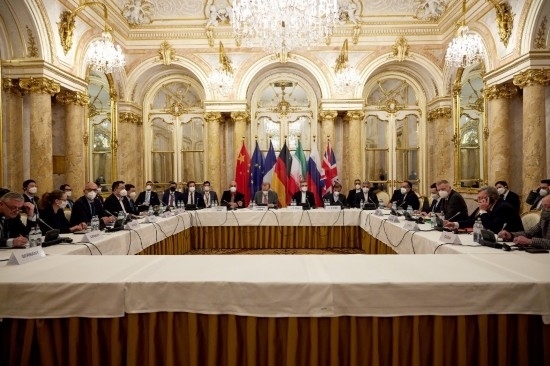 這是2021年12月27日在奧地利維也納拍攝的伊朗核問(wèn)題全面協(xié)議聯(lián)合委員會(huì)政治總司長(zhǎng)級(jí)會(huì)議現(xiàn)場(chǎng)。新華社發(fā)(歐盟駐維也納代表團(tuán)供圖)