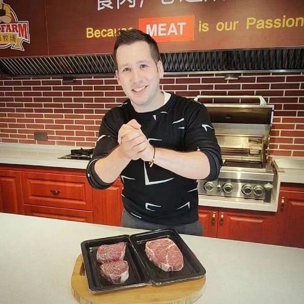 人民網(wǎng)北京3月24日電(符園園、古娜)“大家好,我是小高。一到冬天,我最愛吃的就是香噴噴熱乎乎的火鍋。所以我給大家?guī)砹宋覀兙臏蕚涞幕疱佁撞?。”直播間的高博睿,說著一口流利的中文,熟練地向大家介紹自己的牛肉產(chǎn)品。
