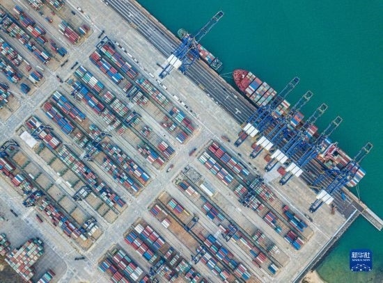在海南環(huán)新英灣地區(qū)拍攝的洋浦國際集裝箱碼頭(無人機(jī)照片,2月28日)。新華社記者 蒲曉旭 攝