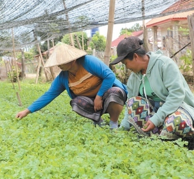 2019年開始,試驗站陸續(xù)在老撾各地建立新品種新技術推廣示范點,至今已在全國4個鄉(xiāng)村建立起技術推廣示范點,指導農(nóng)民進行有機蔬菜、火龍果、水稻種植。金花村位于湄公河支流南俄河邊,曾經(jīng)一到雨季,農(nóng)地就會被淹。在中方技術支持下,村民開墾荒地種植蔬菜,累計種植面積超過500畝?!叭?00多戶,現(xiàn)已有70多戶種植蔬菜,試驗站提供優(yōu)質(zhì)種子、傳授種植技術和防治病蟲害方法,投入少、產(chǎn)量高,讓這里成了首都郊外的蔬菜基地。隨著收入不斷增加,不少村民蓋了新房子、買了汽車,日子越過越紅火?!贝彘L蘇里貢說。