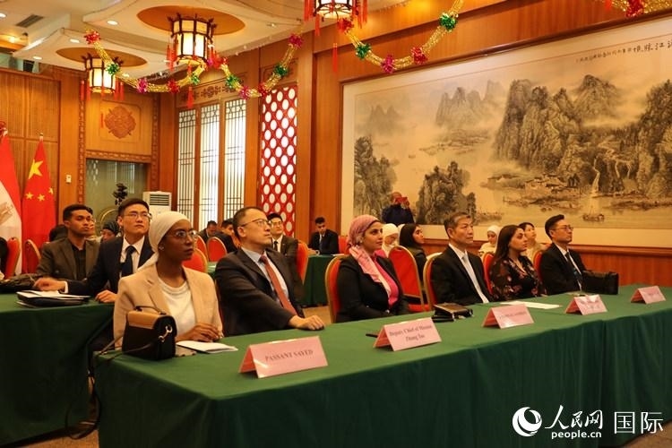 全體與會者共同觀看了阿文版《中國共產(chǎn)黨國際形象網(wǎng)宣片》。使館2名青年外交官代表結(jié)合自身工作經(jīng)歷,分別以《從三個(gè)關(guān)鍵詞讀懂中共二十大重要意義》和《從十年之變看中國式現(xiàn)代化》為題,深入淺出闡釋中共二十大的時(shí)代意義和深遠(yuǎn)影響,以及中國式現(xiàn)代化對發(fā)展中國家的重要啟示。開羅大學(xué)3名師生代表結(jié)合自身工作和學(xué)習(xí)經(jīng)歷,積極分享對中國式現(xiàn)代化的認(rèn)識和體會,高度評價(jià)中國發(fā)展成就,贊賞中國通過“一帶一路”合作助力埃及發(fā)展,表示愿為推動埃中關(guān)系進(jìn)一步發(fā)展貢獻(xiàn)青春力量。