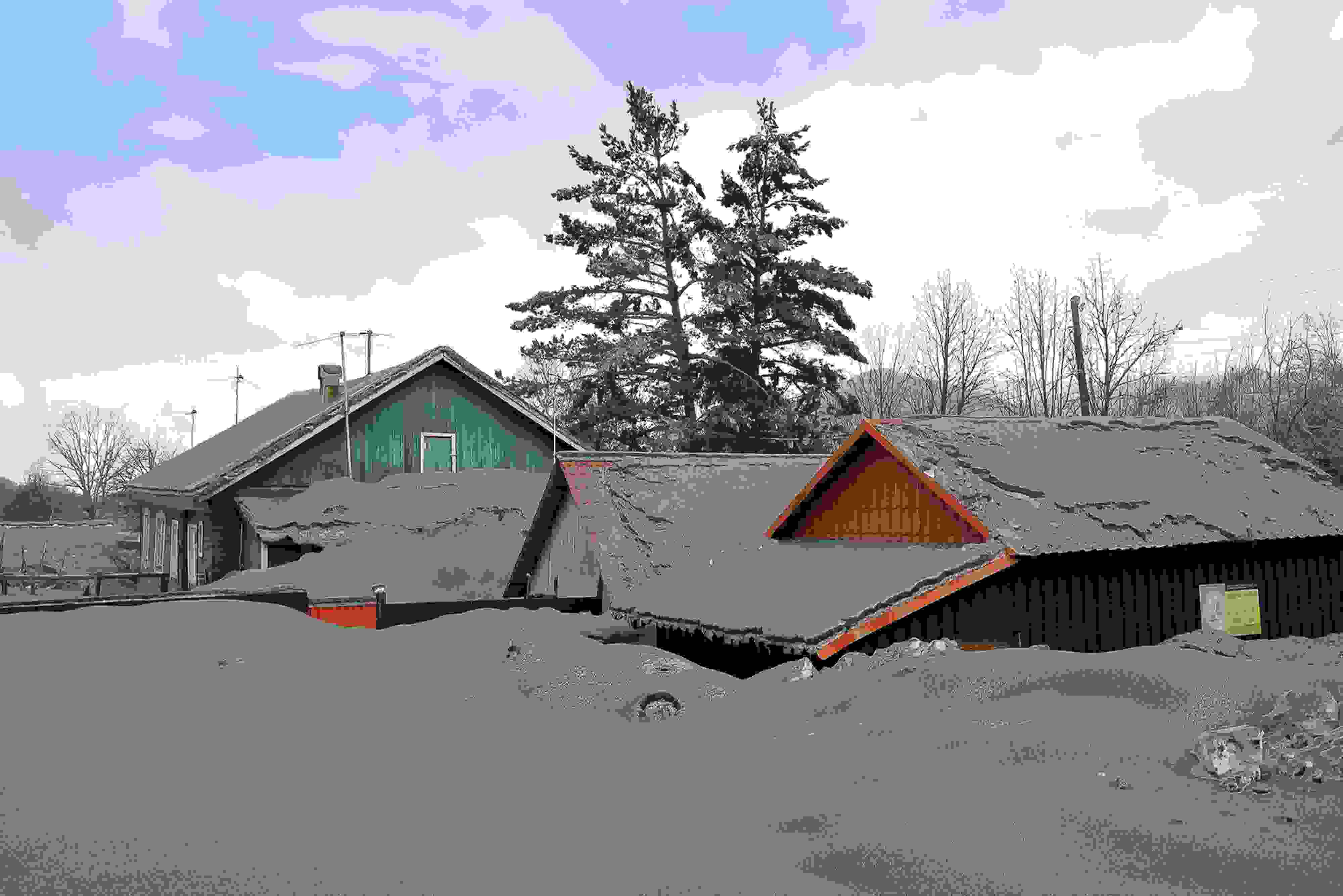 當(dāng)?shù)貢r(shí)間2023年4月12日,俄羅斯勘察加半島,希韋盧奇火山噴發(fā)后,周邊村莊被火山灰覆蓋。希韋盧奇是堪察加半島最大的火山之一,海拔3283米。 視覺(jué)中國(guó)