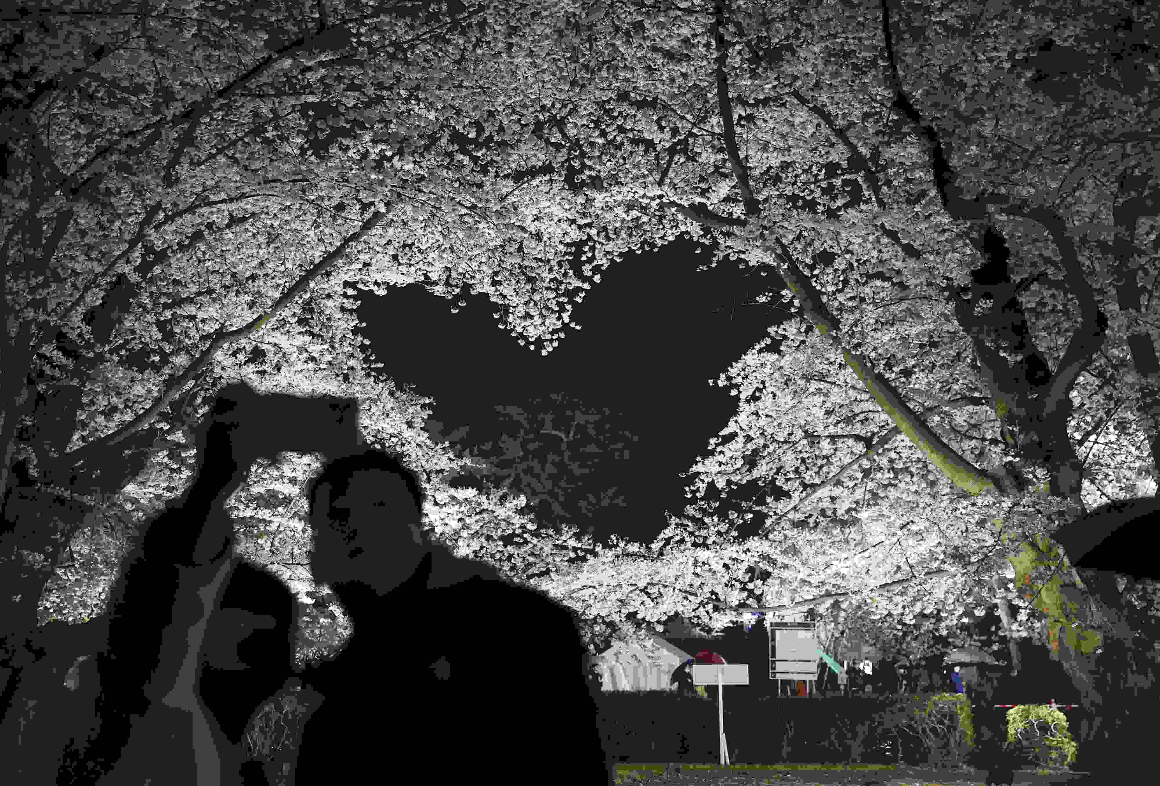 當(dāng)?shù)貢r(shí)間2023年4月15日,日本青森縣弘前市弘前公園的櫻花進(jìn)入盛開(kāi)季。其中,有兩株盛開(kāi)的櫻花樹(shù)枝相互交織,在空中形成了一個(gè)愛(ài)心形狀,成為熱門觀光景點(diǎn)。 視覺(jué)中國(guó)