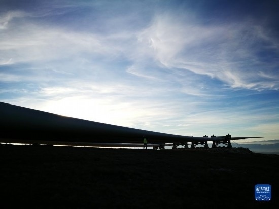 這張未標(biāo)注時間的照片拍攝的是波黑伊沃維克風(fēng)電場施工現(xiàn)場的風(fēng)電葉片(手機照片)。新華社發(fā)(王馳攝)