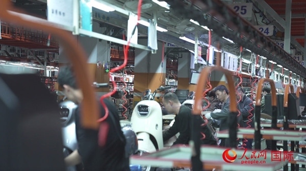 “從零件到整車,一輛雅迪電動車的組裝只需要1200秒?!痹谘诺瞎就猓诺想妱榆嚿a管理部生產二組組長陳紋自豪地告訴人民網記者。后剎線、動力線、平叉、減震、電機、前輪、方向把、龍頭……在雅迪廠區(qū),工人在流水線上不同崗位分工操作,一臺整車下線只要20分鐘?!?1個流水線,每條流水線每天生產1000-1200輛電動車,”陳紋說。