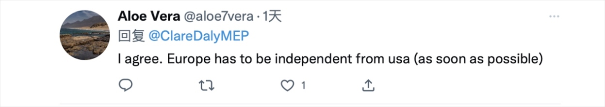 “我同意。歐洲必須從美國(guó)獨(dú)立出來(盡快)。”↓