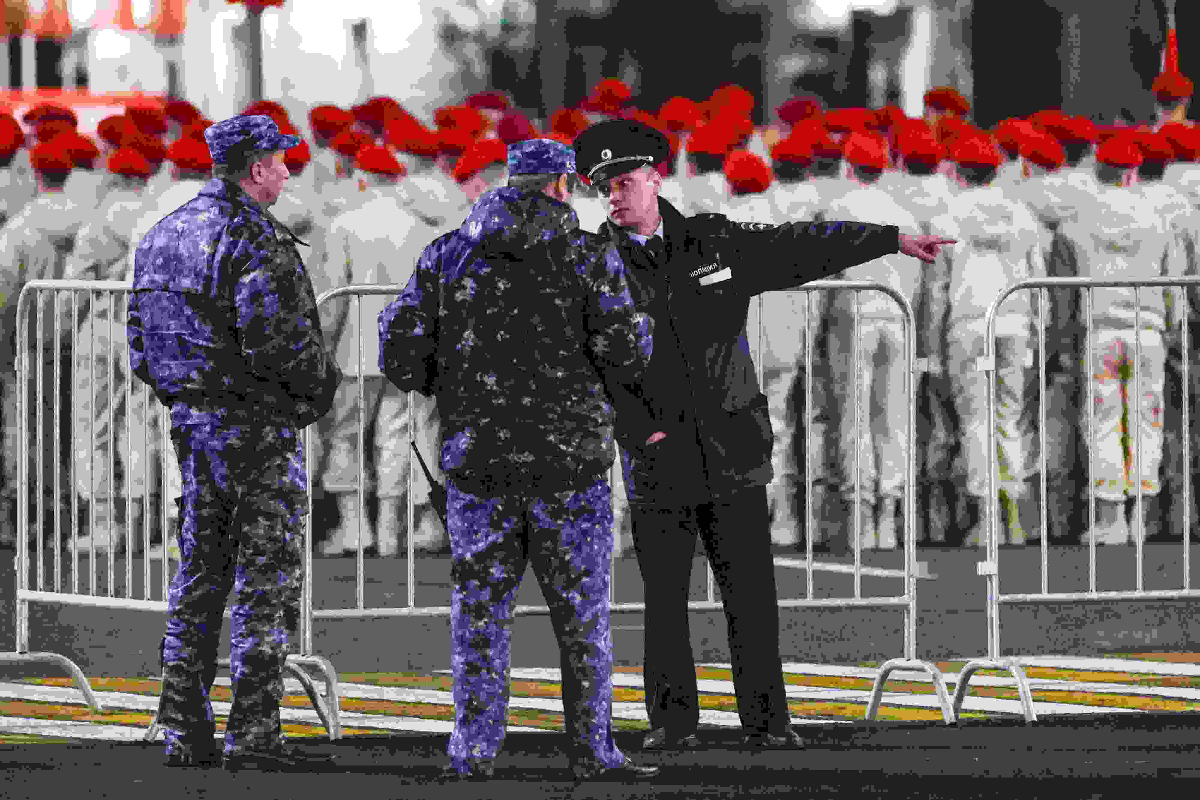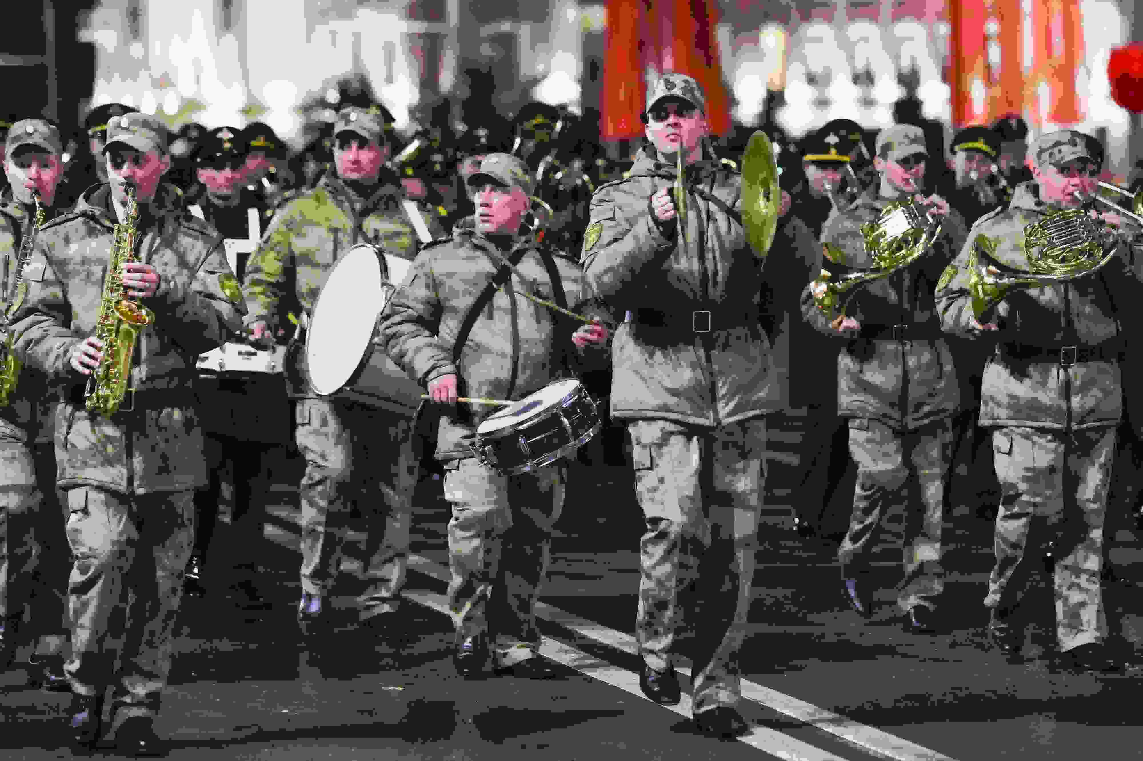 當(dāng)?shù)貢r(shí)間2023年5月2日,俄羅斯頓河畔羅斯托夫,士兵們參加勝利日閱兵彩排。 視覺(jué)中國(guó)