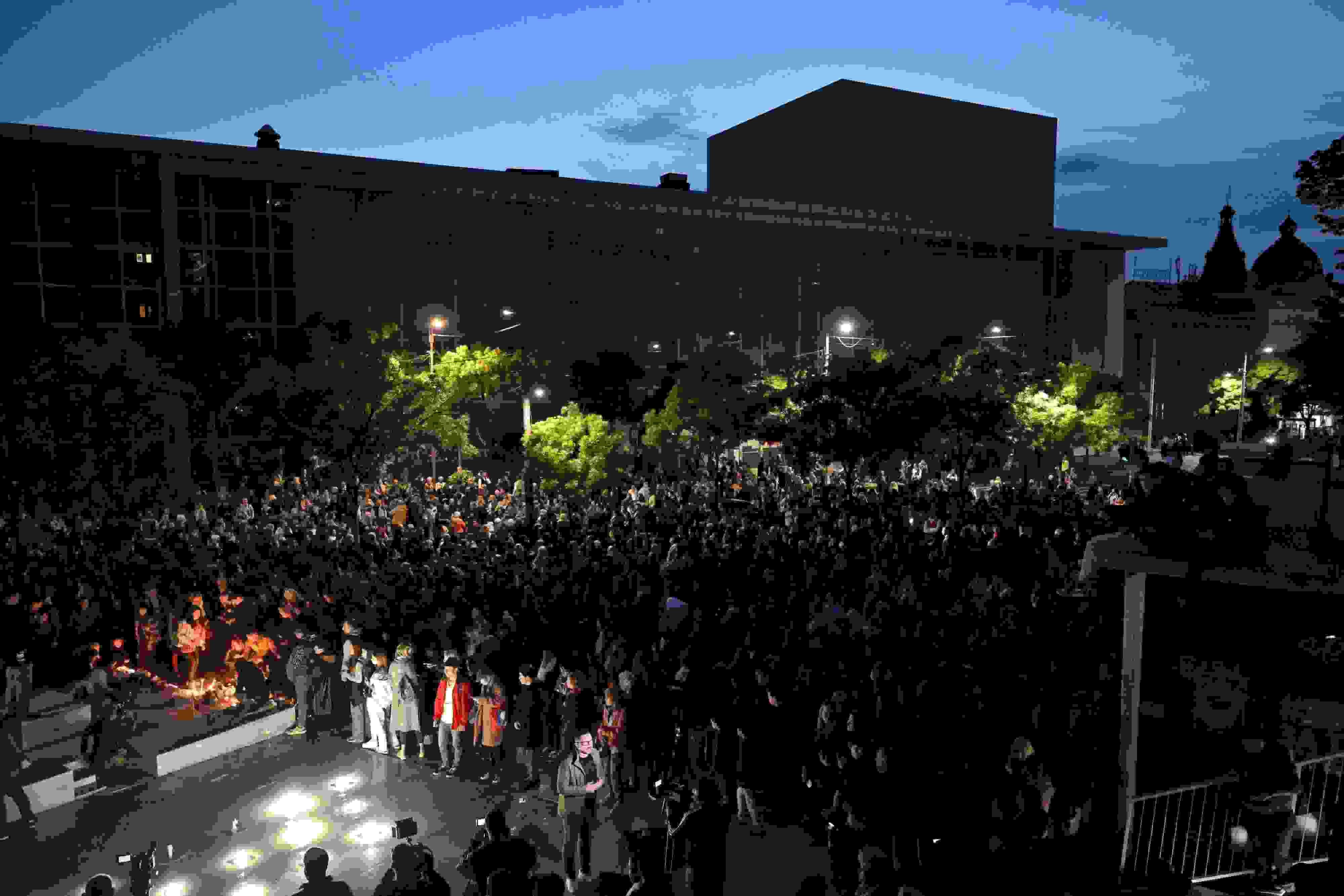 當(dāng)?shù)貢r(shí)間2023年5月3日,塞爾維亞貝爾格萊德,人們在學(xué)校門前悼念遇難者。