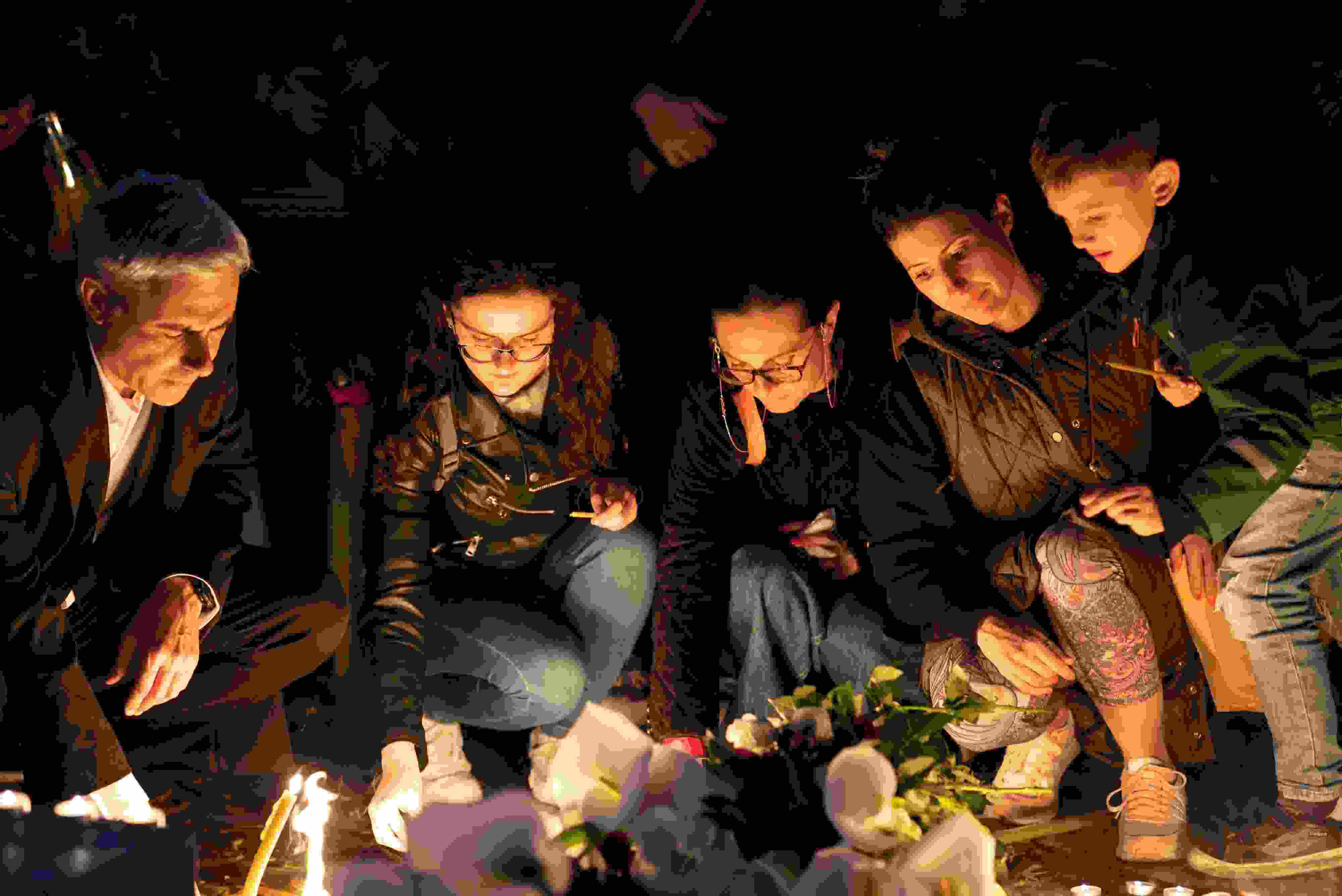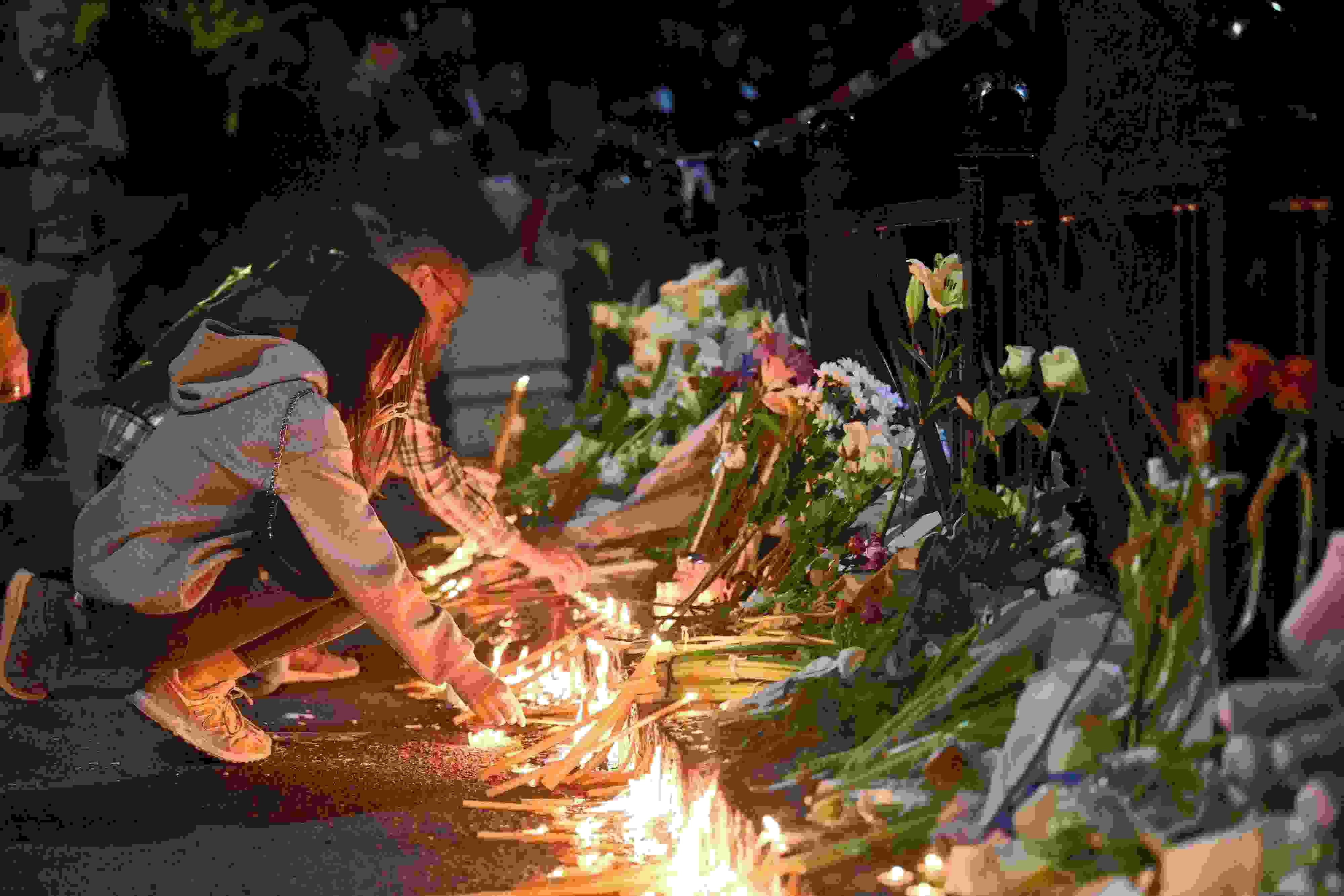 當(dāng)?shù)貢r(shí)間2023年5月3日,塞爾維亞貝爾格萊德,人們在學(xué)校門前悼念遇難者。 視覺中國