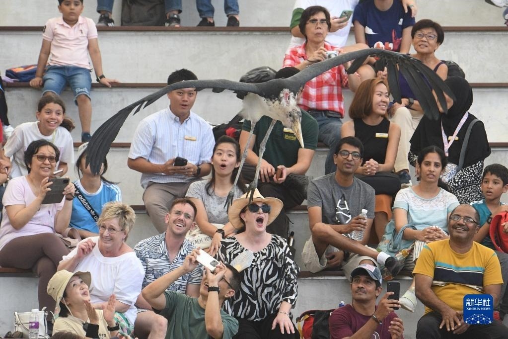 5月8日,觀眾在新加坡飛禽公園開放當天來到園內欣賞飛禽表演。