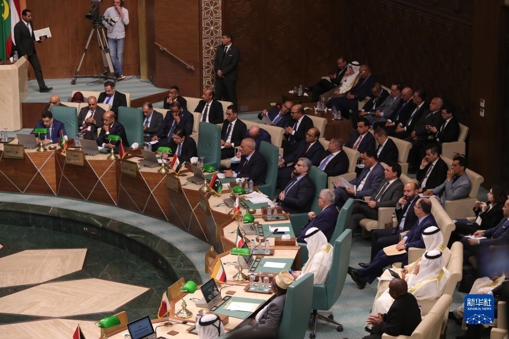 這是5月7日在埃及開羅拍攝的阿拉伯國家聯(lián)盟外長級特別會議現(xiàn)場。
