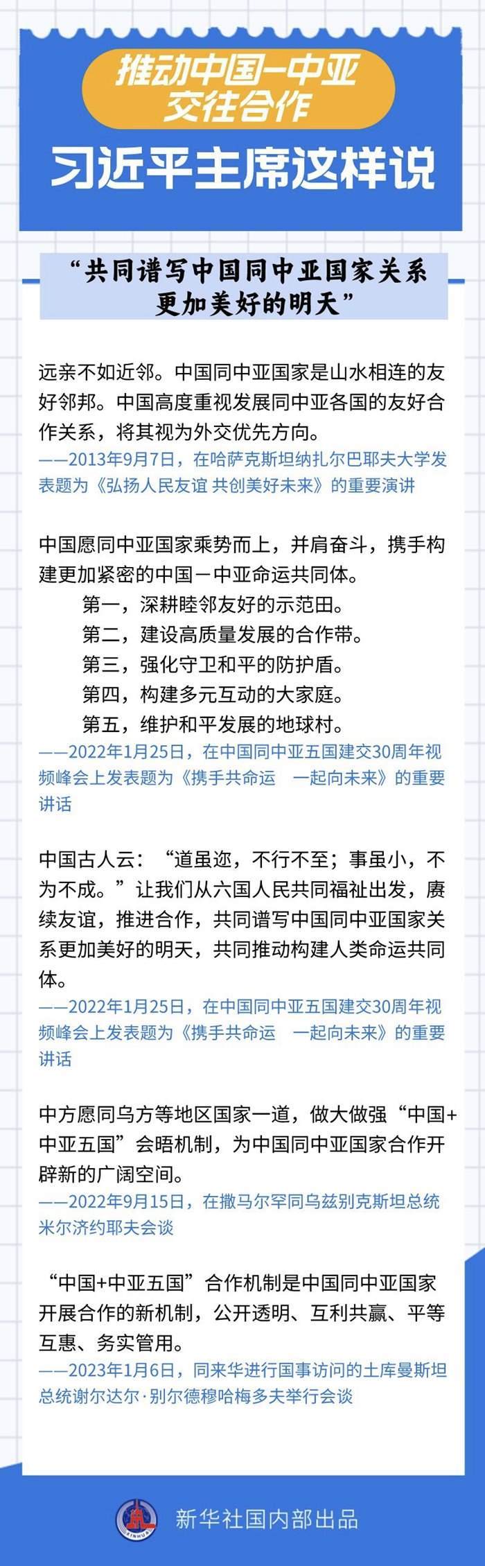過(guò)去十年間,習(xí)近平主席同中亞五國(guó)領(lǐng)導(dǎo)人保持密切互動(dòng),引領(lǐng)中國(guó)同中亞國(guó)家政治互信不斷深化,務(wù)實(shí)合作提質(zhì)升級(jí),國(guó)際協(xié)作走深走實(shí)。關(guān)于中國(guó)-中亞交往合作,習(xí)近平主席作出過(guò)哪些重要論述?一起來(lái)看——