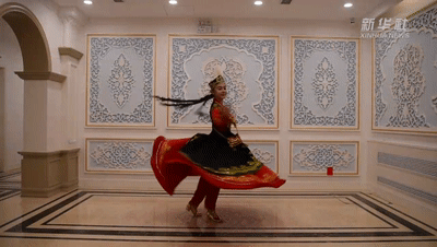 “左旋右轉(zhuǎn)不知疲,千匝萬周無已時。人間物類無可比,奔車輪緩旋風(fēng)遲?!背錆M活力的跳躍和旋轉(zhuǎn)是胡旋舞最顯著的特征。而經(jīng)過千年的融合與傳承,這一元素已深深融入到中國和中亞國家多種舞蹈形式當(dāng)中。