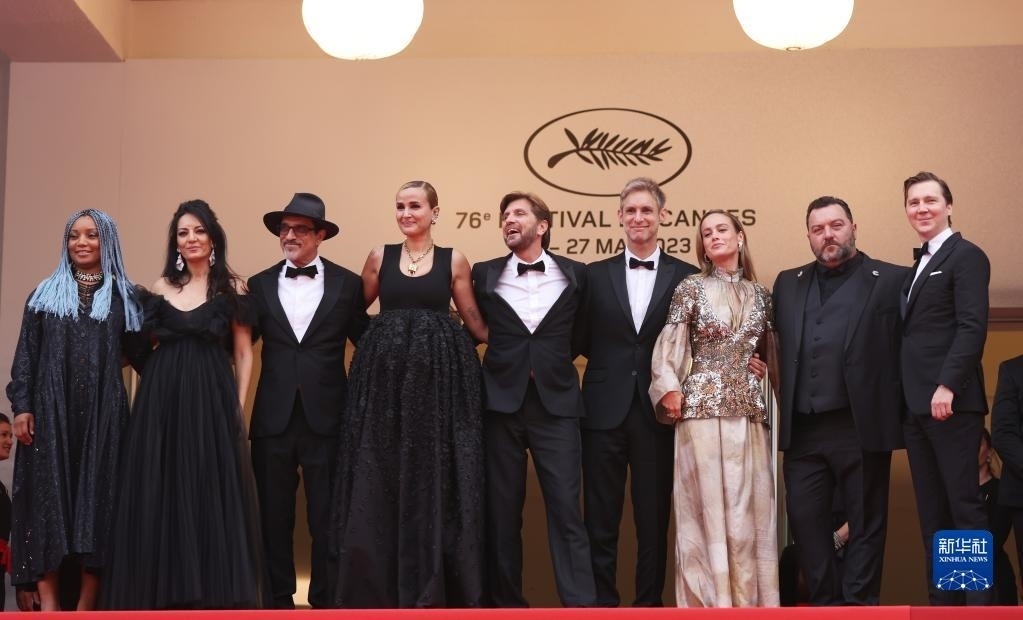 5月16日,在法國戛納舉行的第76屆戛納國際電影節(jié)上,主競賽單元評審團(tuán)主席、瑞典導(dǎo)演魯本·奧斯特倫德(中)攜眾評委亮相開幕式紅毯。