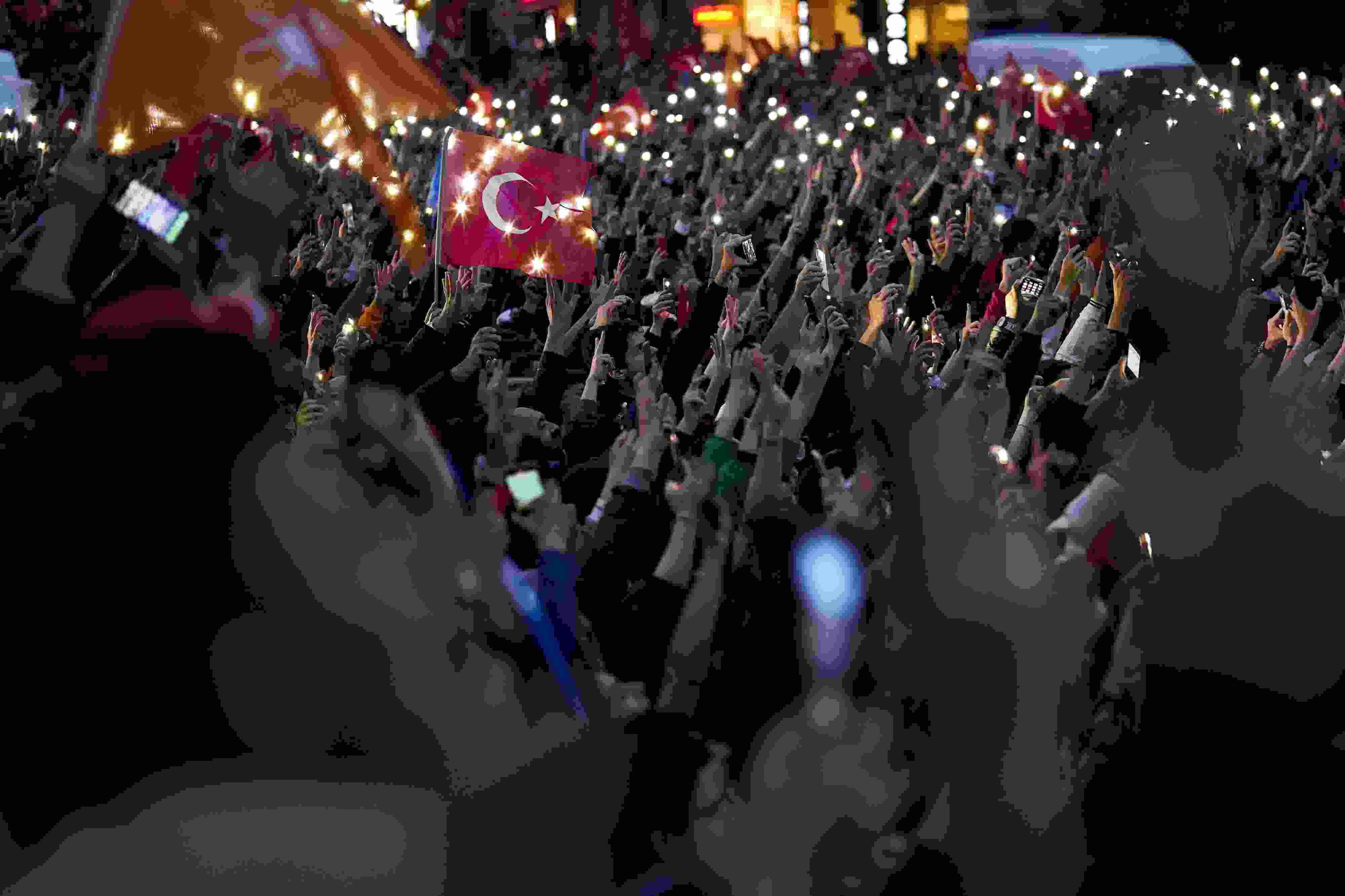 當(dāng)?shù)貢r間2023年5月28日,土耳其伊斯坦布爾,埃爾多安的支持者慶祝其再次當(dāng)選土耳其總統(tǒng)。土耳其最高選舉委員會主席艾哈邁德·耶內(nèi)爾28日深夜在首都安卡拉宣布,根據(jù)初步計票結(jié)果,現(xiàn)任總統(tǒng)埃爾多安在28日舉行的總統(tǒng)選舉第二輪投票中戰(zhàn)勝對手,再次當(dāng)選總統(tǒng)。 視覺中國