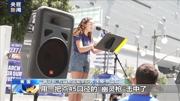 “幽靈槍”校園槍擊案幸存者 米婭·特雷塔:當(dāng)時(shí)我們正在談笑,突然聽(tīng)見(jiàn)“砰”的一聲槍響,當(dāng)?shù)诙晿屄曧懫饡r(shí)我已經(jīng)跌倒在地上。我爬起來(lái),跑進(jìn)教室里,同學(xué)和老師急忙為我止血,我被一名不認(rèn)識(shí)的同校學(xué)生,同時(shí)也是一個(gè)未成年人,用一把點(diǎn)45口徑的“幽靈槍”擊中了。