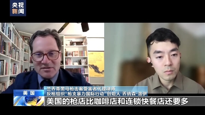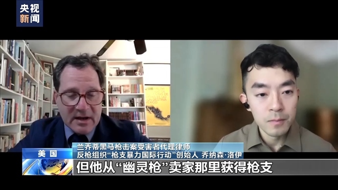 蘭喬蒂黑馬槍擊案受害者代理律師、反槍組織“槍支暴力國(guó)際行動(dòng)”創(chuàng)始人 喬納森·洛伊:兇手本來(lái)不允許購(gòu)買(mǎi)和擁有槍支,因?yàn)樗蟹缸镉涗?,但他從“幽靈槍”賣(mài)家那里獲得槍支,從而瘋狂殺人。