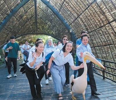 東盟青年在廣東廣州市南沙水鳥(niǎo)世界生態(tài)園參觀。 何中輝攝