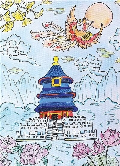 意大利羅馬中華語言學校學生林萬納的繪畫作品。意大利羅馬中華語言學校供圖