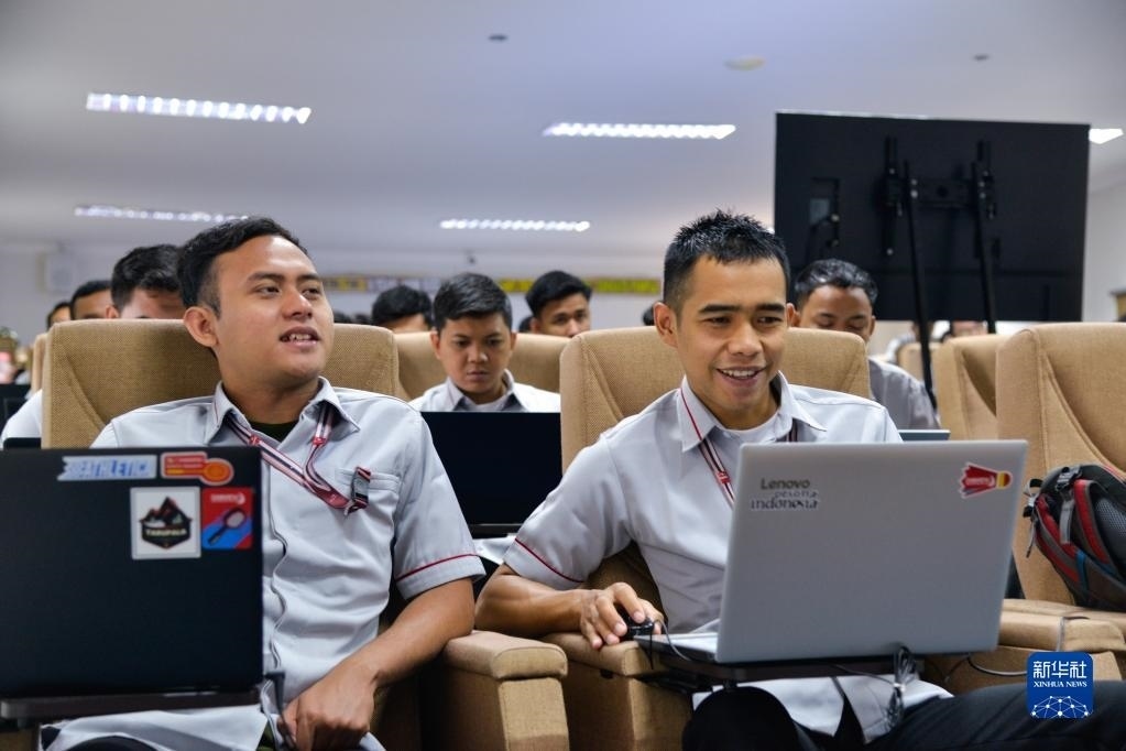 6月7日,在位于印度尼西亞茉莉芬市的印尼鐵路理工學院,學員在接受雅萬高鐵運行控制中心調度人員培訓。